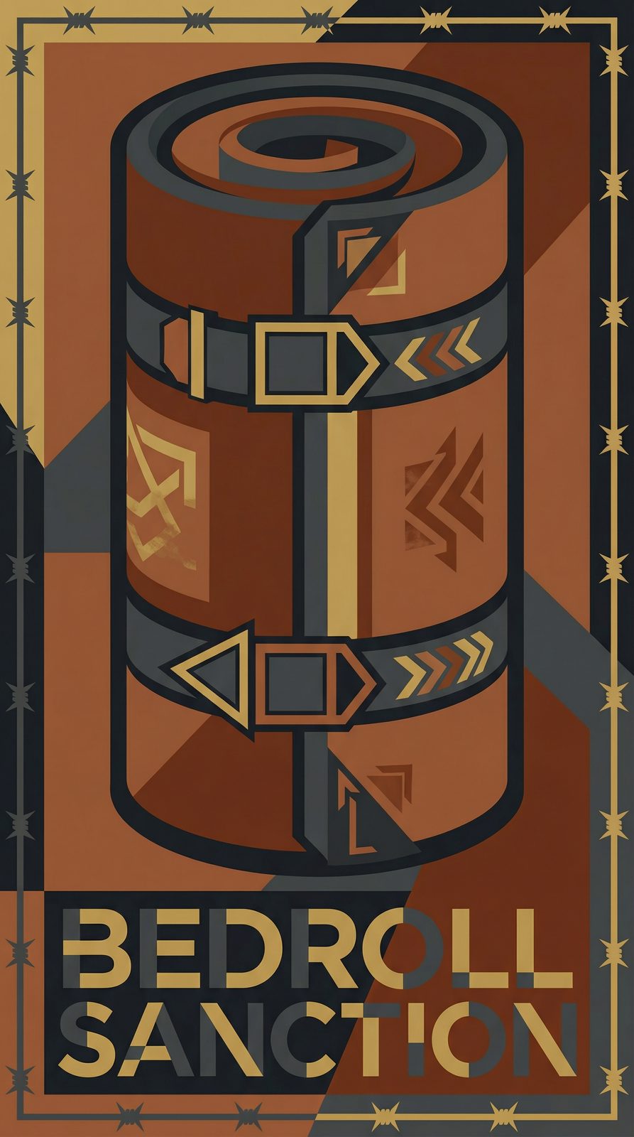 Born when a lazy guard let the herd run wild, this sun-faded canvas cylinder is a micromanager of sleep. Stained with mesquite and regret, it decrees rest is earned, not given. Wrapped in leather straps, it’s a heavy burden that only respects those who finish the job. Close your eyes, and it gets heavier.