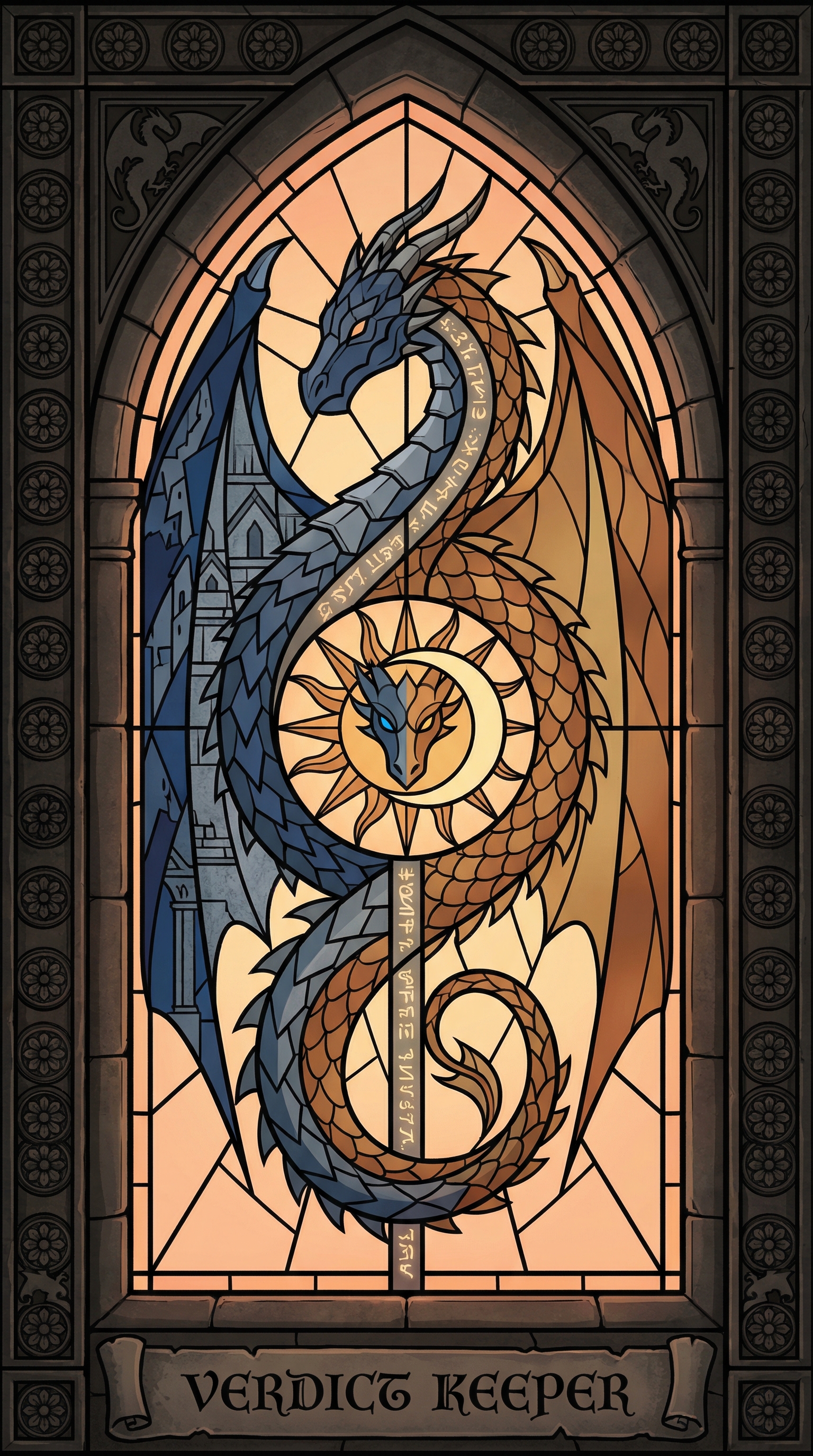 When the Sunset Court and Farmington Aerie nearly fractured over conflicting assessments of a legendary keeper's worthiness, the granite peaks themselves trembled in distress. From that seismic discord, the Verdict Keeper emerged—neither Court dragon nor Aerie wyrm, but something older still. It exists to harmonize both traditions' standards, ensuring judgments rendered under alpenglow hold equal weight to bonds forged on frontier grounds.