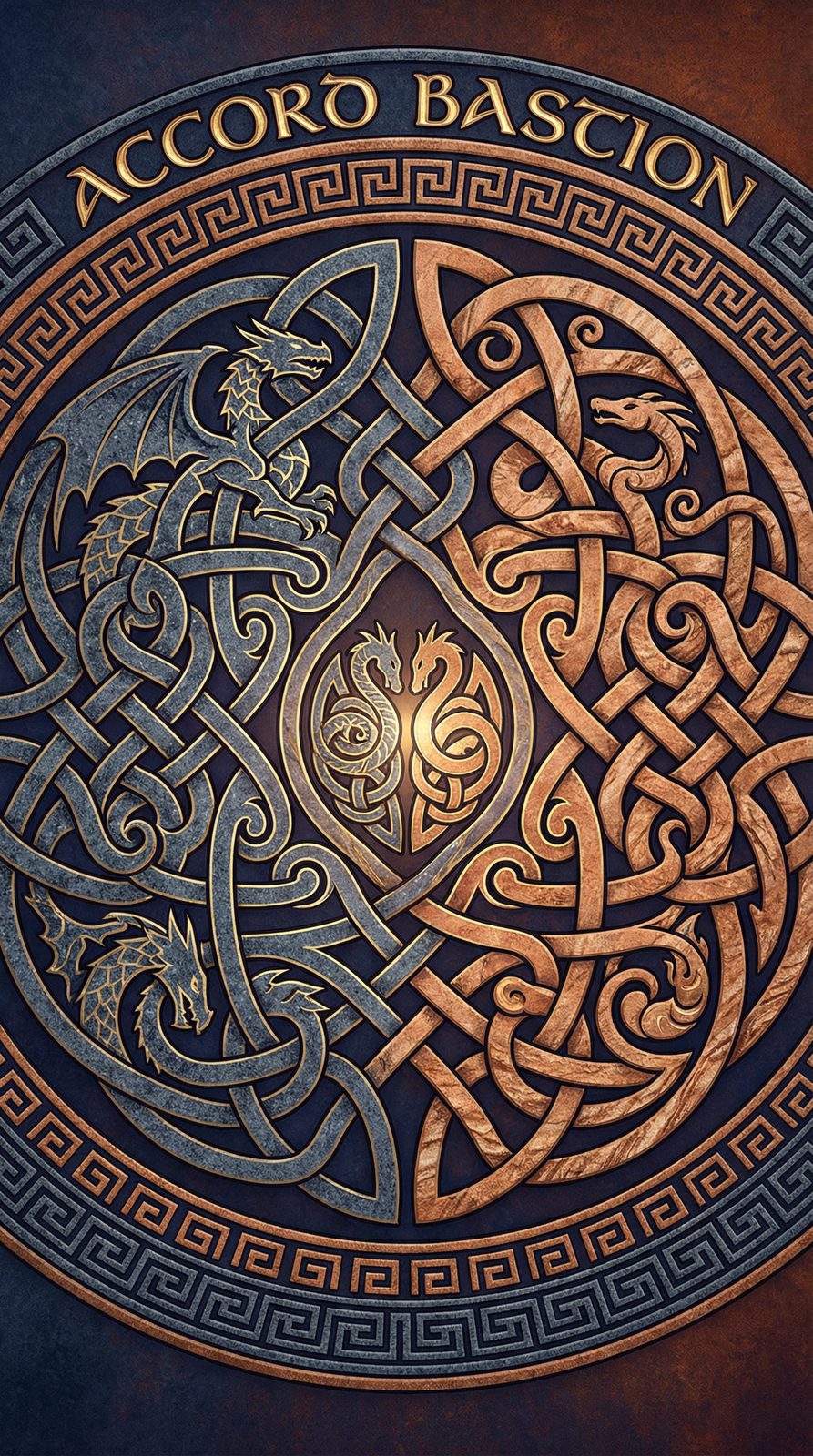 Forged in the primordial moment when elder Court dragons and frontier Aerie wyrms first agreed to share the mountains' judgment, the Accord Bastion materialized as living proof of their covenant, an eternal fortress ensuring neither tradition would ever eclipse the other in the eyes of the peaks.
