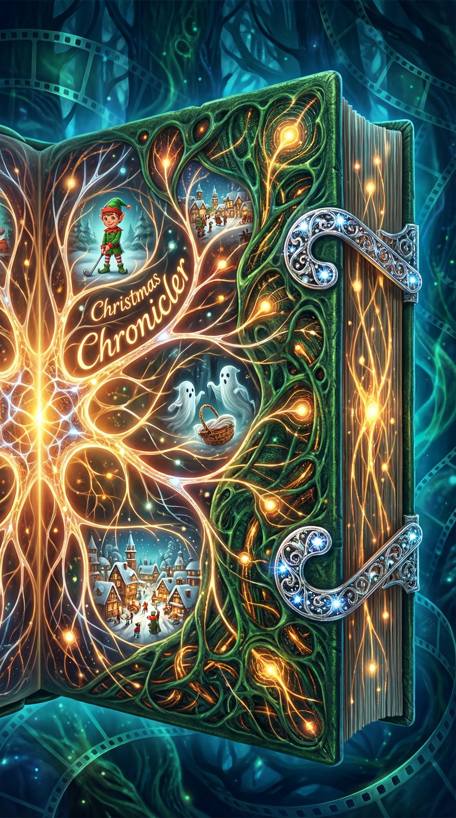 The Christmas Chronicler manifests as a weightless yet substantial tome with a cover of intertwined metallic chains that form wreath patterns. Its pages are enchanted parchment that displays cinematic, miniature scenes of players from all leagues, with text that updates in real-time to record every significant throw and charitable moment. The entire object glows with a warm, golden light that pulses in rhythm with the season's spirit.