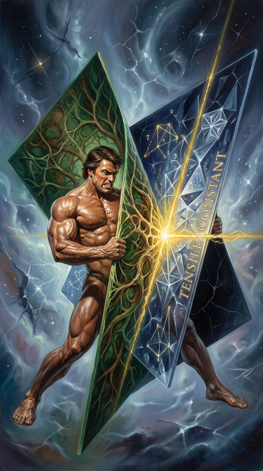 The Tensile Constant crystallized in the moment between unity and fracture, when reality stretched but had not yet broken—it exists as the permanent record of that final instant of wholeness, the measurement of exactly how much tension existence can bear while remaining fundamentally connected.