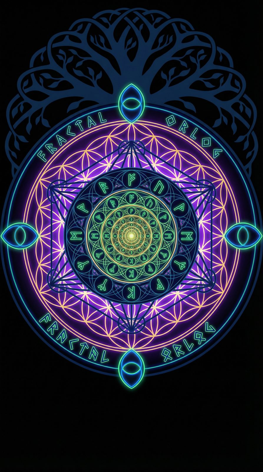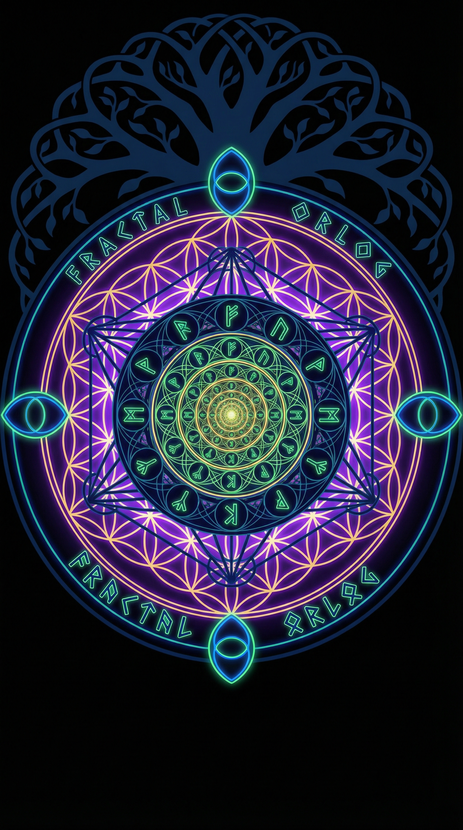 Fractal Orlog manifests as an infinite regress of geometric runes, each containing the complete pattern of all others, glowing with bioluminescent stave-work that pulses in rhythm with the communal howl. It exists simultaneously at every creek crossing—the Bifröst portals between worlds—as a single unified entity. Within its recursive depths lies the complete record of every throw, every howl, every moment of triumph and failure at the sacred grove since Johnny Roberts first established it as holy ground.