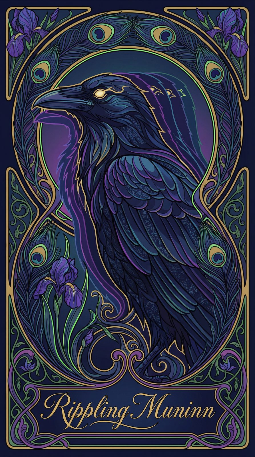 Muninn's feathers ripple with bioluminescent memories from every league, each plume containing fractal recordings of past throws, howls, and eliminations. Its eyes function as prismatic portals, simultaneously displaying events from different weeks of the Hall of the Howl. When it caws, the sound travels both forward and backward through the series timeline, creating echoes that warriors sometimes hear before events occur.