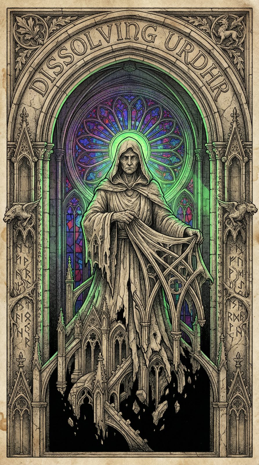 At the base of Yggdrasil where Urdhr guards the Well of Fate, the accumulated weight of millions of rounds played at the #1 course on Earth created a temporal paradox. The Dissolving Urdhr emerged as the release valve—a manifestation allowing warriors to decompose their disc golf histories and enter each trial as if newborn, judged only by their present howl.