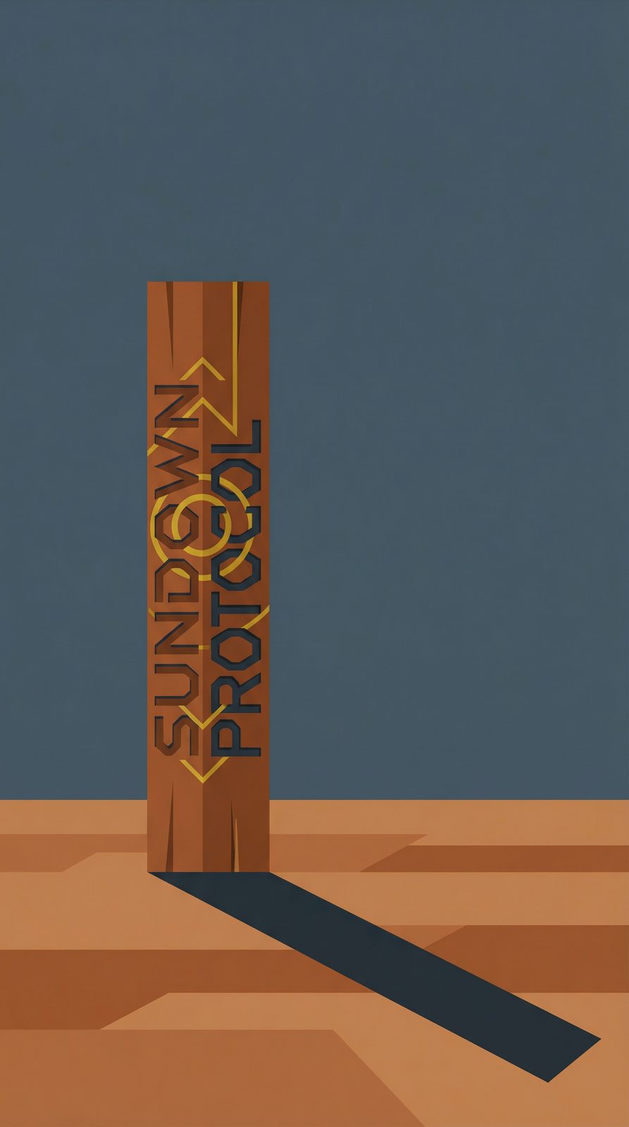 Sundown Protocol functions as the inescapable deadline that crystallizes fluid performance into permanent verdict—when light fails, all scores become scars, all standings become testament, and the day's work either earns you a brand or confirms your path to the bone yard.