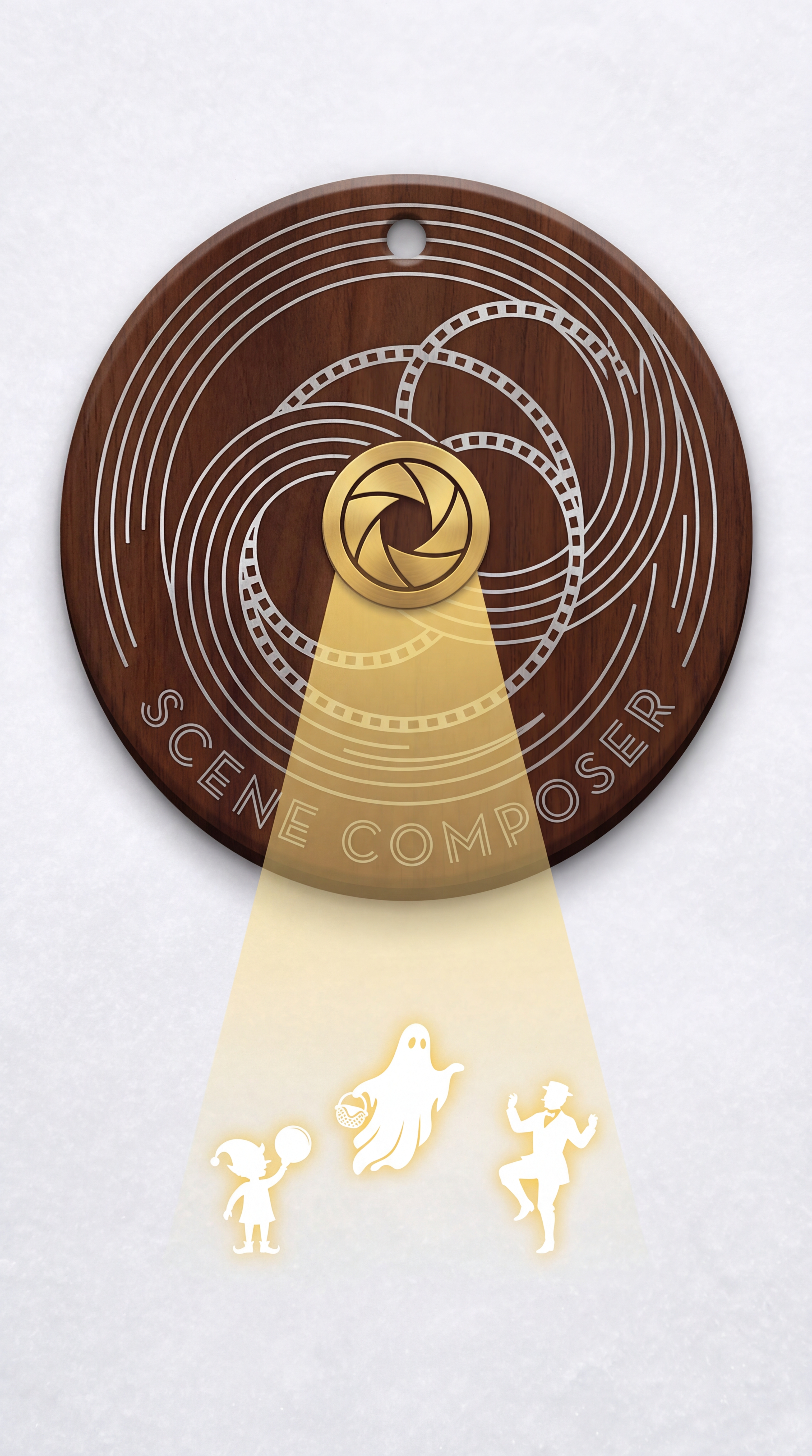 The Scene Composer hums with a different, faint Christmas carol melody that reflects the emotional tone of the tableau it is crafting. Its core emits a warm, directional light that acts like a spotlight, illuminating only the archetypes and environmental details it is currently arranging. Where it passes over a blank tag, it leaves behind temporary, glowing staff lines and storyboard sketches in the frost, which settle into the final, detailed illustration.