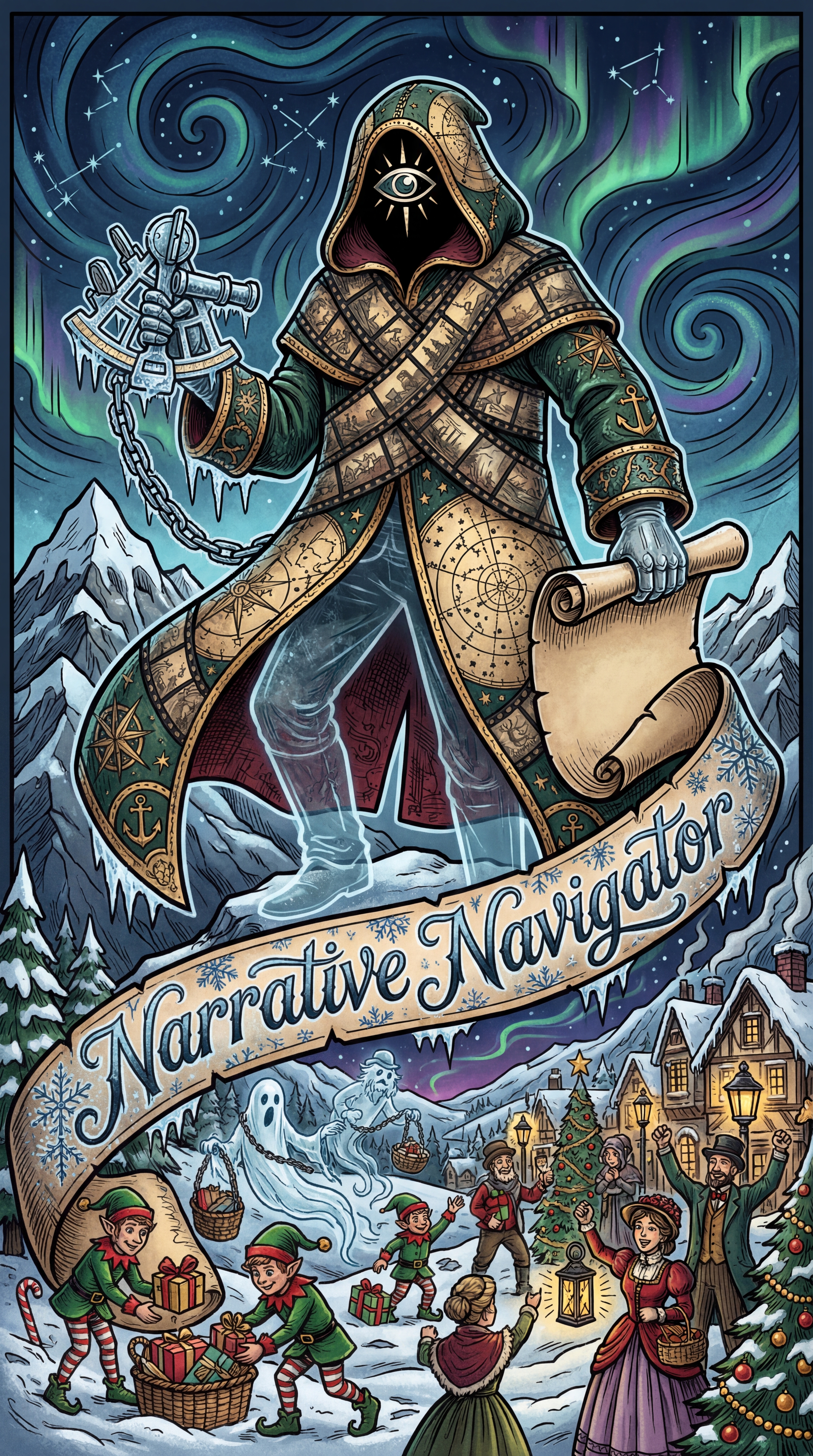Born from the first collective wish of the winter warrior brotherhood for a cohesive legend, the Narrative Navigator emerged from the frozen ink of a thousand charity scorecards, given form to ensure their scattered tales wove into one epic.