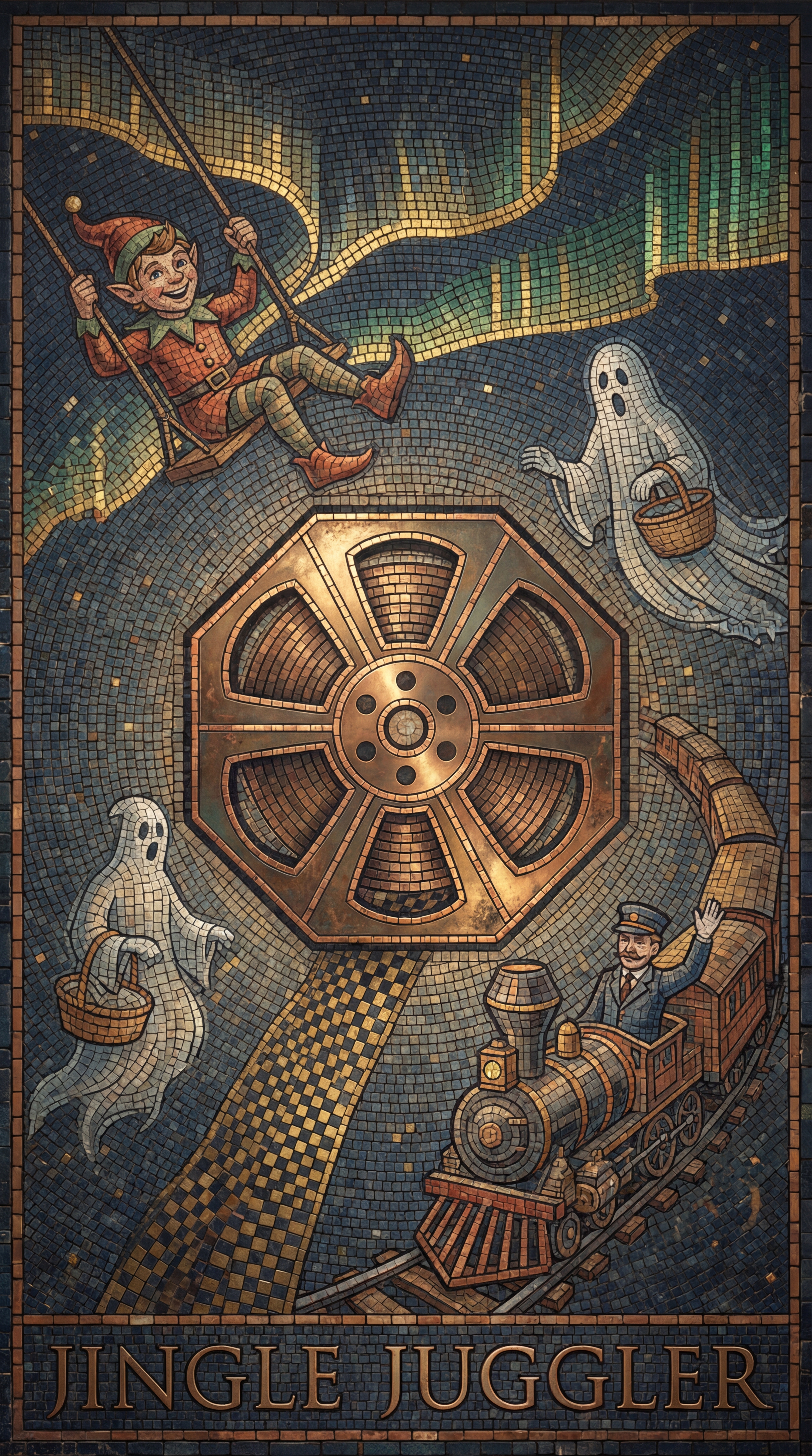 The Jingle Juggler coalesced from the spliced film cells of every Christmas movie ever edited, born in the ghost light between projected frames. It gained sentience when a harried editor accidentally overlapped ten different holiday narratives, creating an entity that could now juggle entire character arcs and scenic moments before they crystallized into finished scenes.
