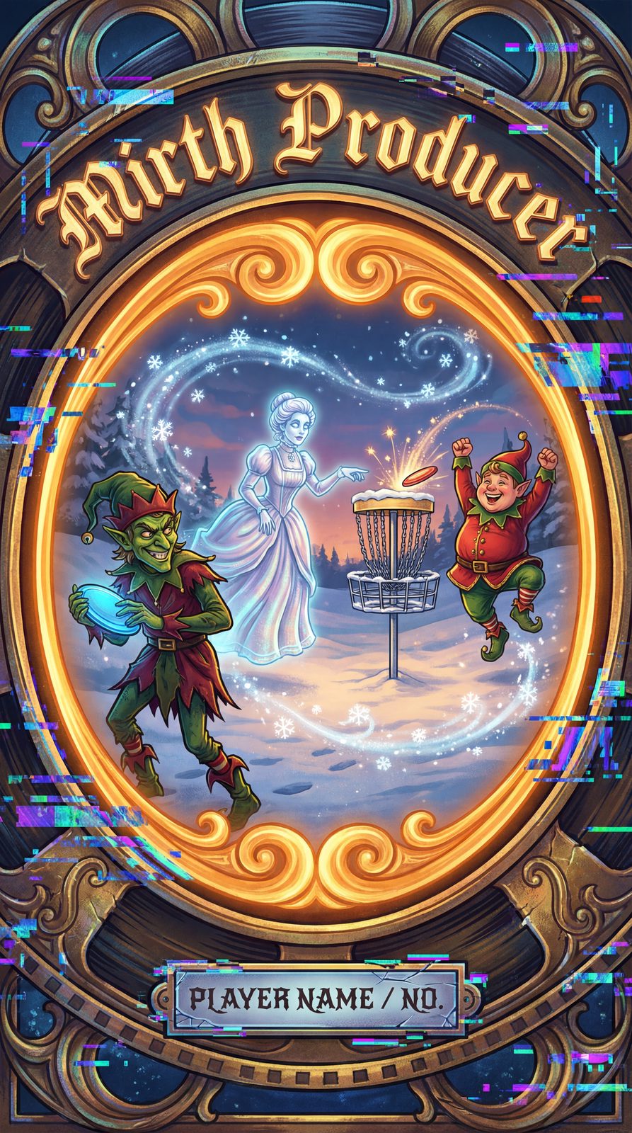 The Mirth Producer was born from the first genuine laugh shared on a snowy disc golf fairway, a spark of joy that crystallized into an entity dedicated to freezing such moments in time for the bag tags.