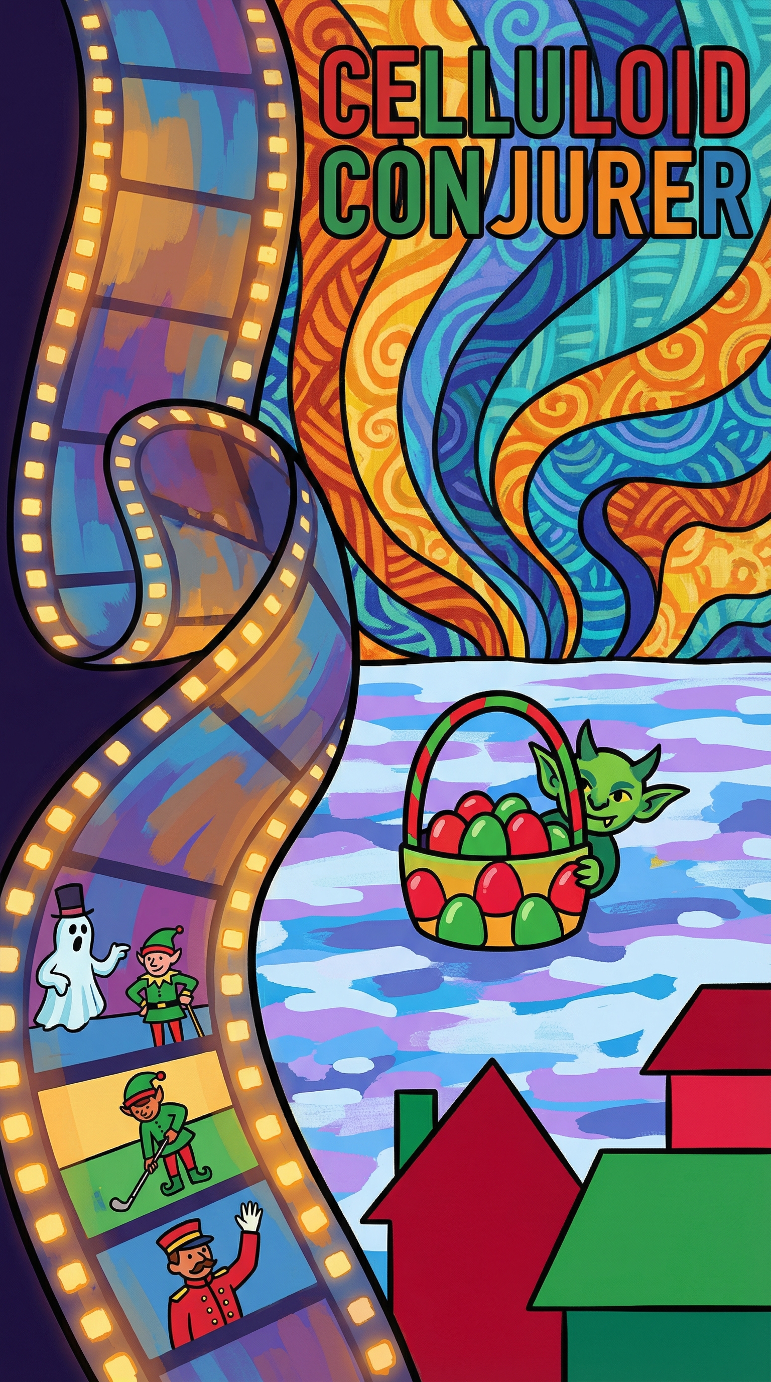 When the Chainsmas Chronicles began, the collective belief of winter warriors watching holiday movies by firelight crystallized into the Celluloid Conjurer—a living film strip capable of summoning any Christmas character from the silver screen into illustrated reality. Each act of charity and competition feeds its power, allowing it to pull more vivid characters and dramatic interactions from the cinematic ether.