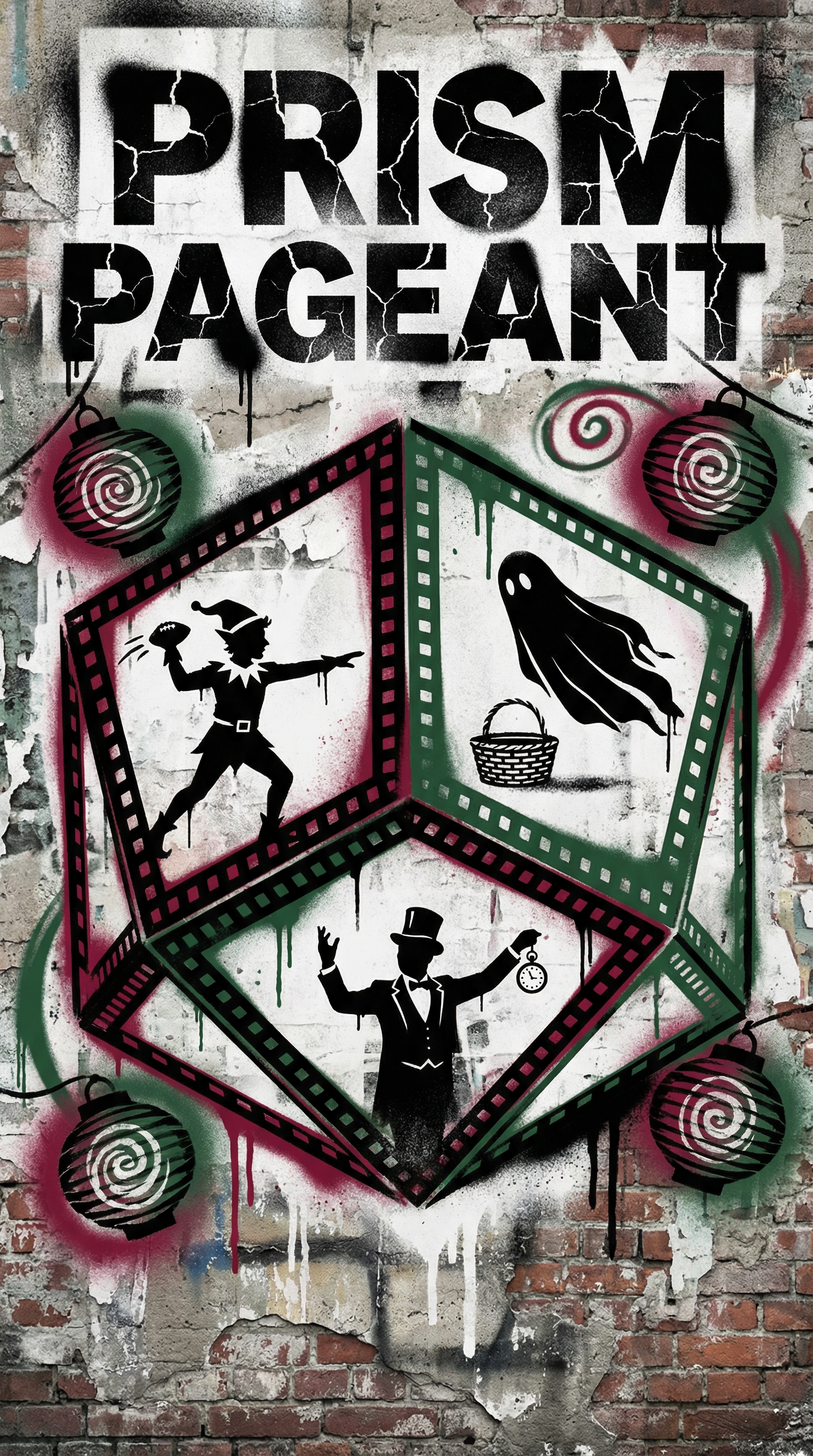 Born when the first snowflake of the Chainsmas Chronicles fell through a Victorian lamppost's stained glass, the Prism Pageant crystallized at the intersection of all ten leagues' light, forever tasked with separating unified brotherhood into its component theatrical moments. Each facet formed as a new league joined the series, creating a perfect dodecahedron that now refracts the complete narrative spectrum.