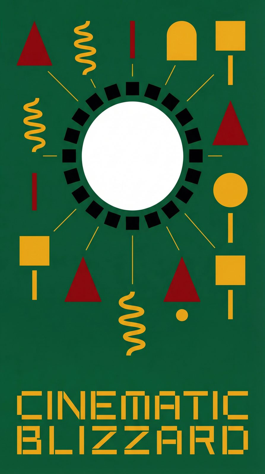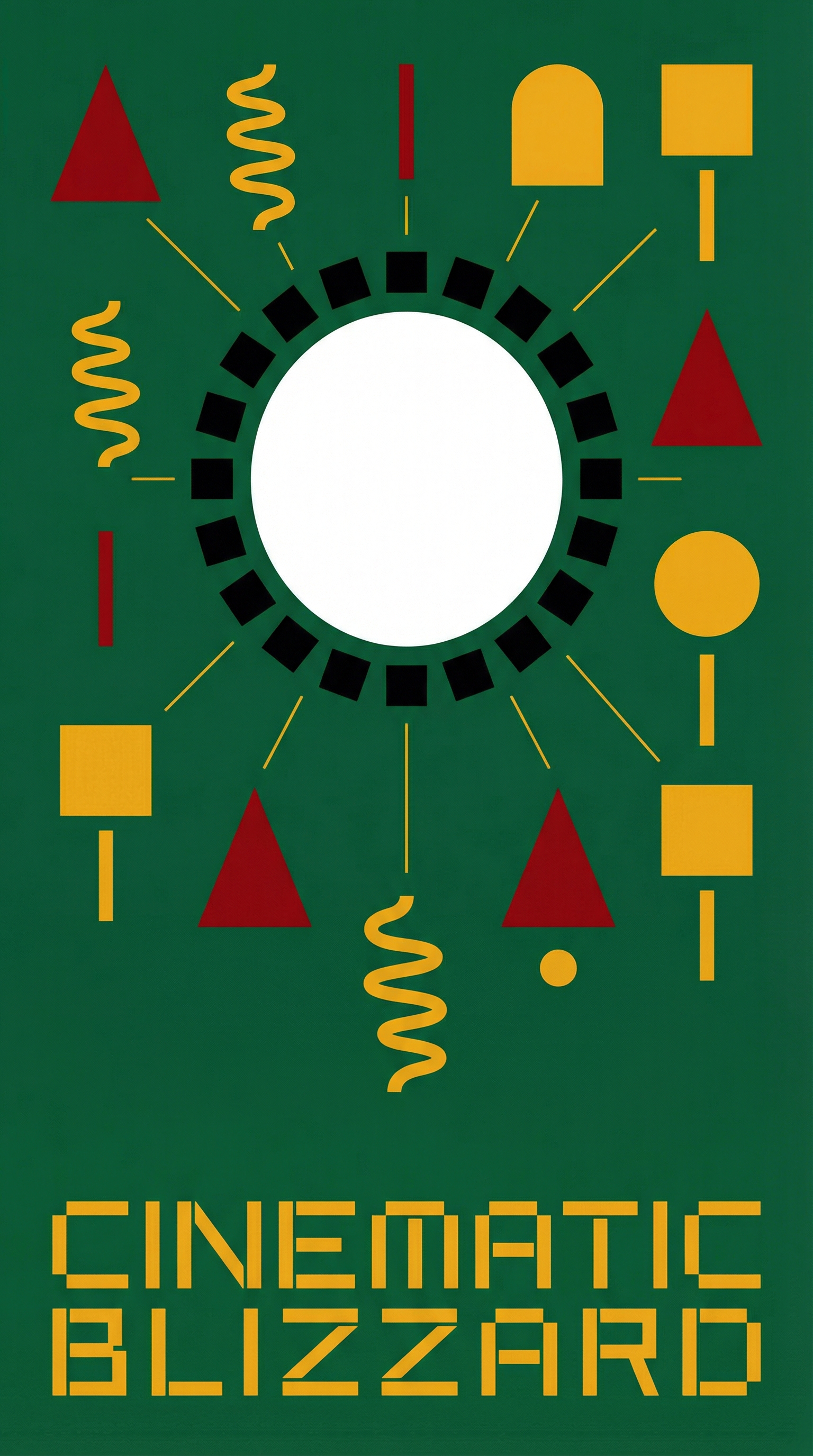 The Cinematic Blizzard manifests as a swirling vortex of frost crystals, each containing the silhouette of a different holiday archetype—an elf's pointed hat, a ghost's flowing chains, a conductor's lantern. Within its winds spiral visible fragments of golden film strips, clicking and whirring like an old projector. As it choreographs characters into their positions, it leaves luminous trails of #FFB300 gold that trace the paths of their eventual interactions. The storm emits a haunting symphony: jingling bells harmonizing with the mechanical rhythm of reels, creating the soundtrack to which every tableau is composed.