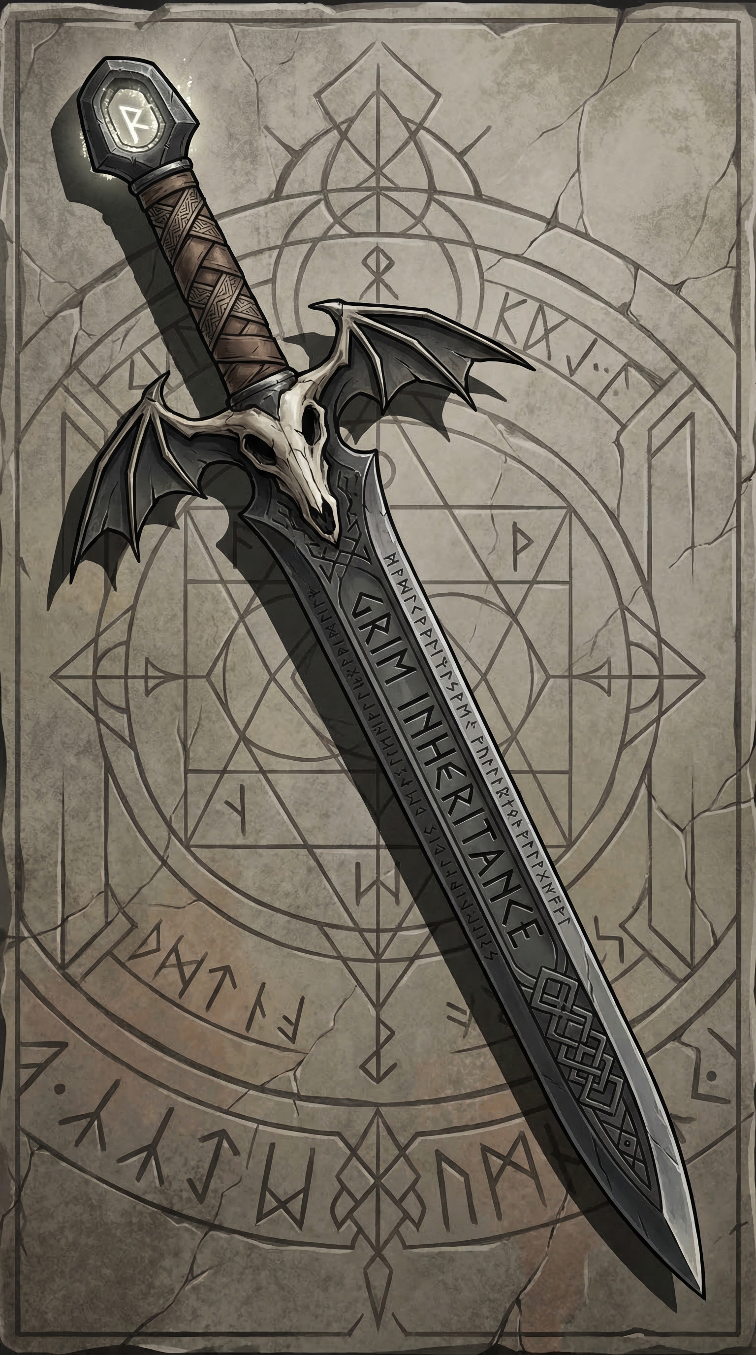 Appears as a jagged iron blade fused with blackened bone, its edge永远 sharp despite no maintenance. The handle is wrapped in weathered leather from a hundred different hands, each grip having left traces of sweat and determination.