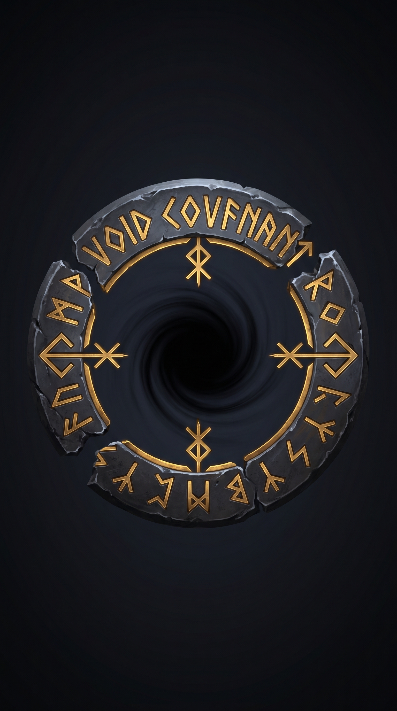 The Void Covenant appears as a broken circle of black iron, its edges jagged where the void once tore through reality. The surface is impossibly smooth, yet flickers with shadows that don't match surrounding light. At its core, a single point of absolute darkness rotates slowly, drawing the eye and attention of all who gaze upon it. The tag cannot be destroyed, only transferred through survival rituals.